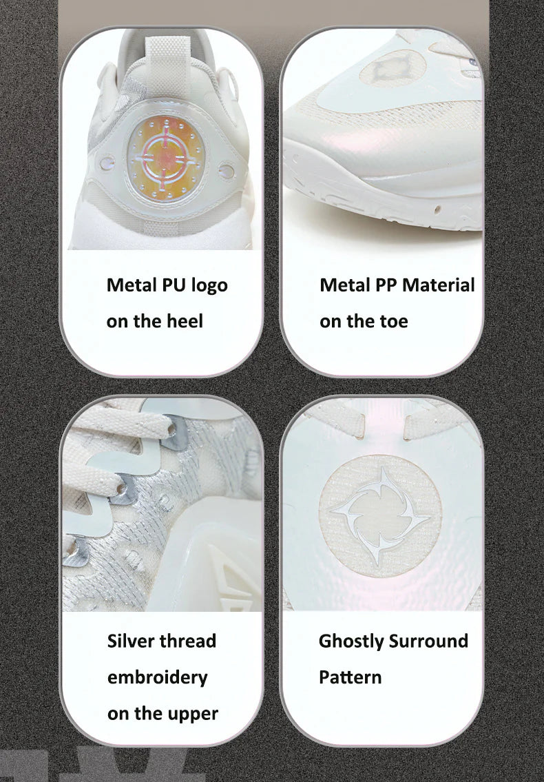 The Rigorer AR2 “Ghost” features a clean white upper with silver electro-embroidery and a phantom TPU heel for a subtle shadow effect. Lightweight and responsive, it’s built for serious basketball performance with a futuristic edge.