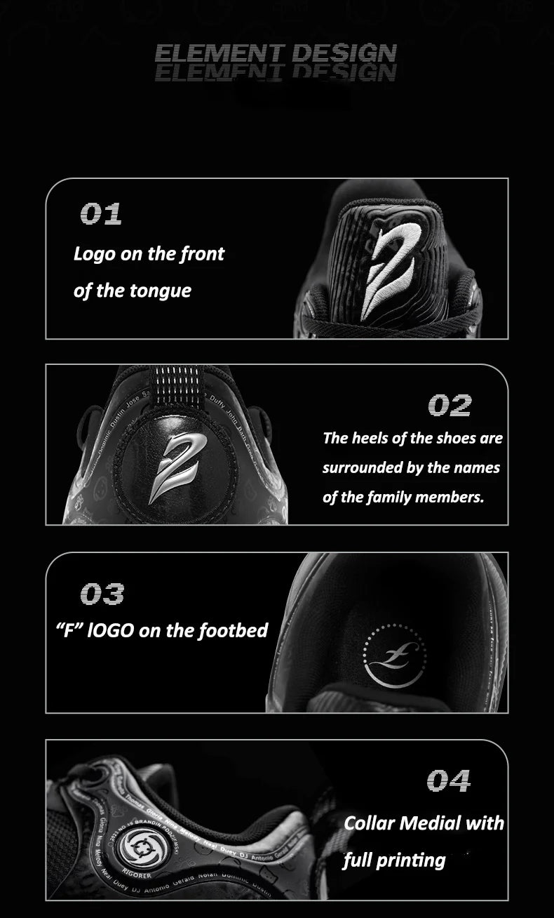 Step onto the court with purpose in the Rigorer BP1 “Family Matters”, the debut signature basketball shoe of Brandin Podziemski. Designed with athletes in mind, this high-performance sports shoe features a sleek black base accented with striking silver detailing. Celebrating the power of love and connection, the upper is engraved with the names of cherished family members and pets—symbolizing the support that drives greatness.